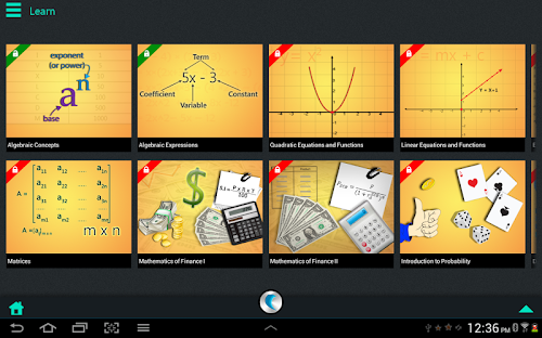 This app provides a quick summary of essential concepts in Business Math I and Business Math II via easy to grasp snack sized chapters: