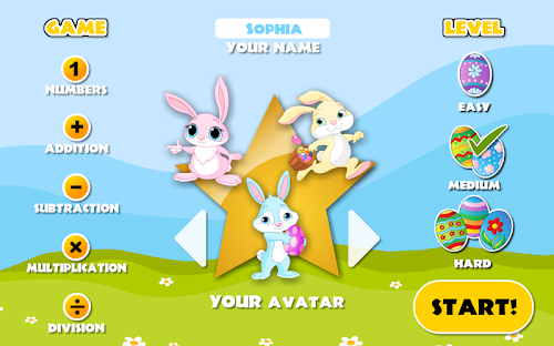 Joyful bunnies love playing math games. Children have to catch bunnies that carry correct answers to displayed equations.
