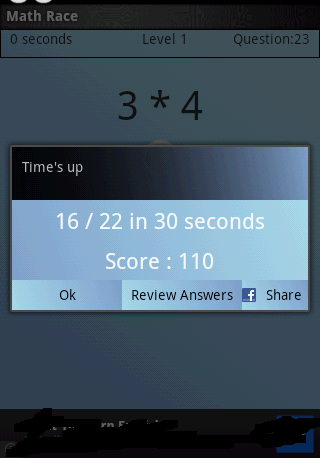 Math race grown the spirit of competition by sharing your results with friends on Facebook.