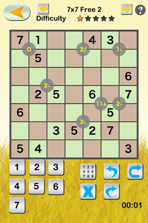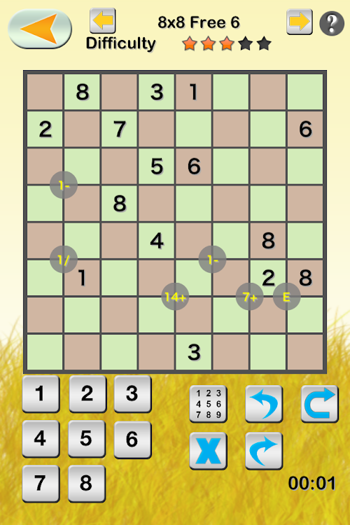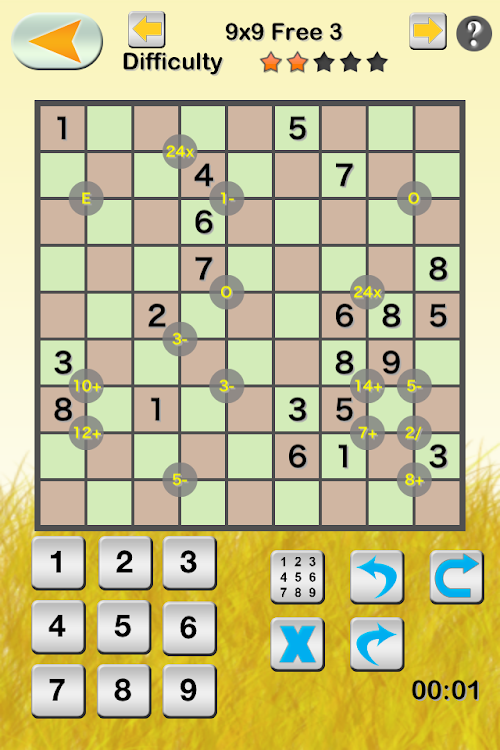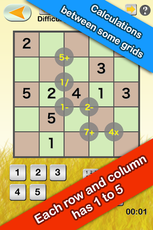 - A number and a sign of mathematical operation (addition, subtraction, multiplication, division) - a number is a result of an operation execution with numbers in diagonally adjacent cells.