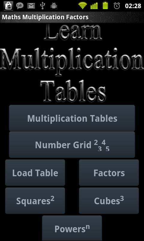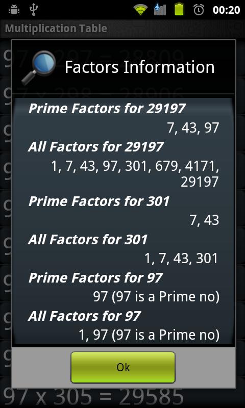 3. Open “Load Table” and enter a number (1 to 99) to load it’s Multiplication Table. Click on any item to open it's factor info.