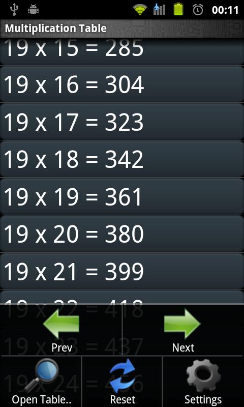 Open Table..: Opens the Multiplication Table of the specified number (1-99)
