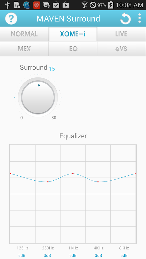 A. XOME-i(Externalization), Live(Reverberation), Mex(Maestro), EVS(Virtual Speaker)