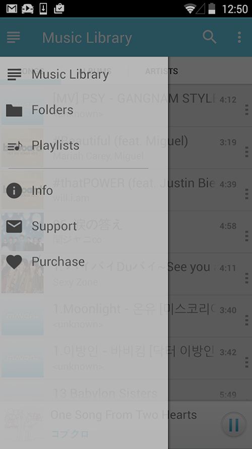 5. Play music by artits, albums, songs, playlists and folders