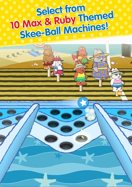• Select from 10 Max & Ruby themed skee-ball machines.