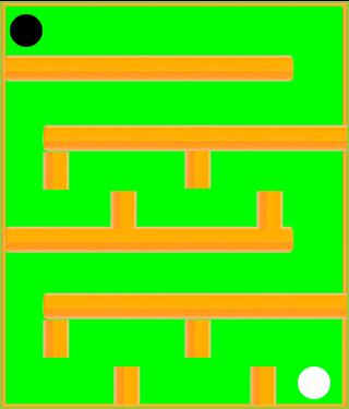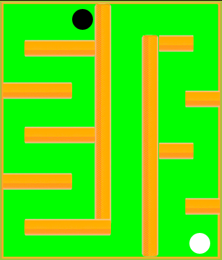 This mobile application is a game of precision ball along the corridors of different mazes in search of the hole to pass the level and move to the next .