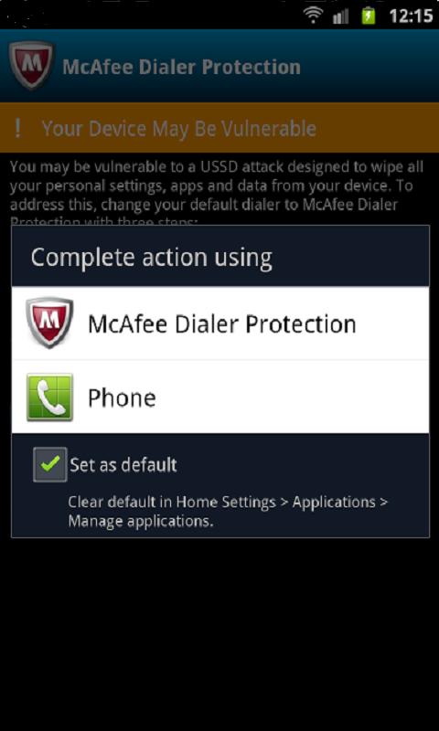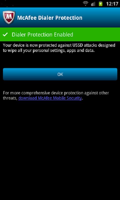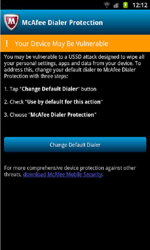 Tags: dialer, dialer protection, wipe, wipe attack, ussd, ussd code, ussd check, android ussd, url, security, McAfee, McAfee Mobile Security