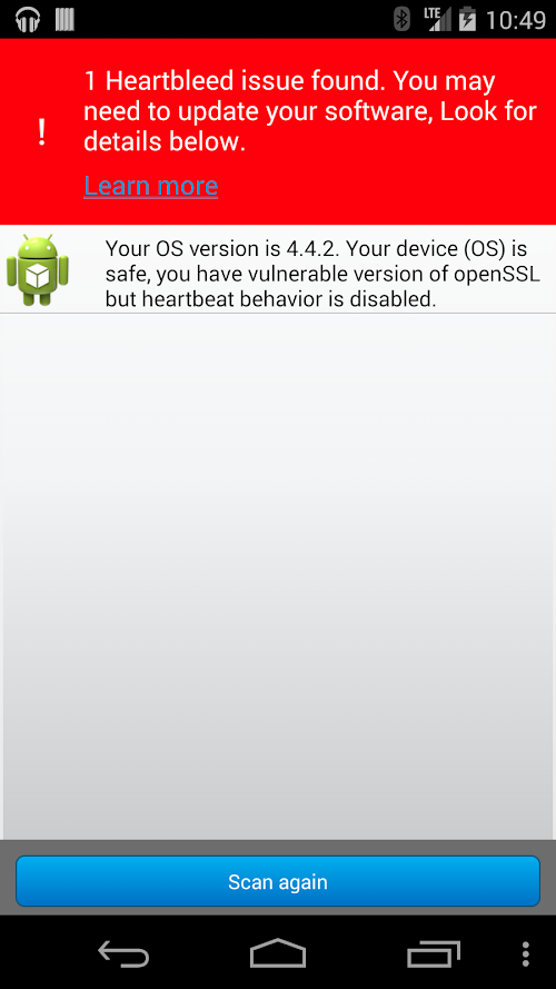 This app determines if your device or any apps installed on your device are affected by the Heartbleed bug.