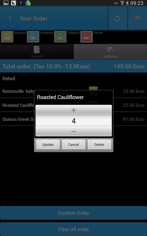 *Restriction to delete order if its already being prepared.(or the status of the order is “Preparing”, “Prepared” or “Served”)