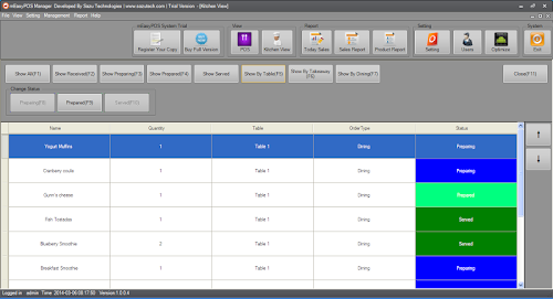 *Kitchen Module : With both Tablet (mEasyKitchnApp) and Standalone kitchen module, Status of the food can be viewed, updated from kitchen so that customers as well as employee gets complete status of the food is preperation process, or being prepared, or served.