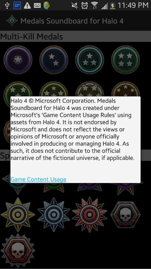 -Due to Microsoft terms of use, the name is changed to "Medals Soundboard for Halo 4