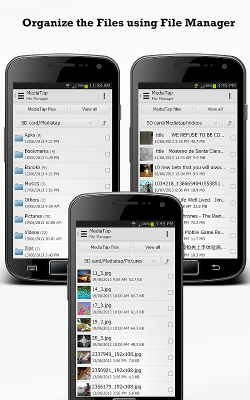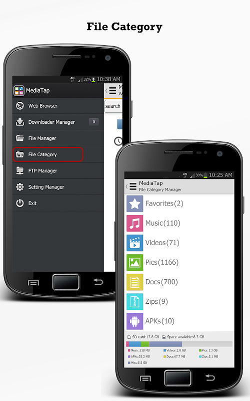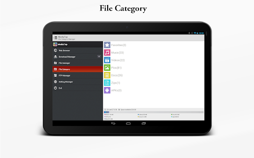 -All downloaded files are automatically organized by file types such as “movies”, “music” and stored under the “File Manager”.
