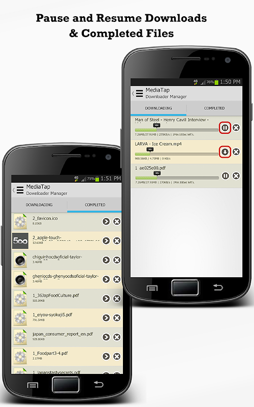 -Downloads can be resumed automatically even if you lose internet connection.