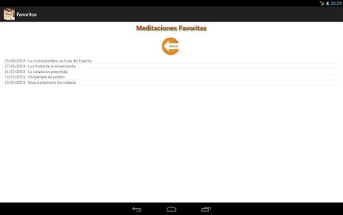 ►Agregada la opción de marcar la meditación como favorita al hacer click en la estrella y desmarcarla haciendo click nuevamente (arriba a la izquierda). En el menú de opciones se podrá acceder a la lista con las meditaciones favoritas marcadas y leerlas