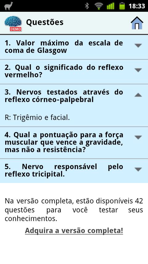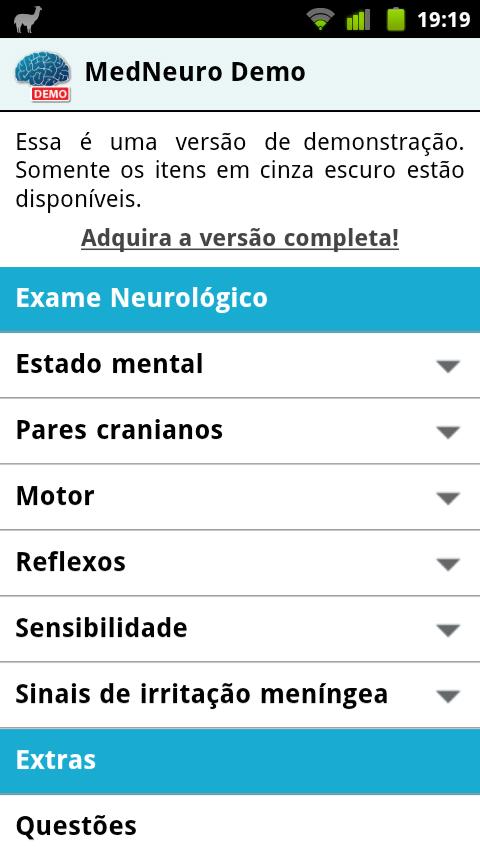 Nesta versão de demonstração somente alguns tópicos do exame estão disponíveis.The Glasgow coma scale to the cranial nerves, the application contains all stages of neurological examination. Includes detailed explanations of techniques, tips and examples that facilitate the execution of the test. Handy for quick reference at the bedside. Didactic and interesting for those who want to learn the steps and techniques, understanding what you are doing.