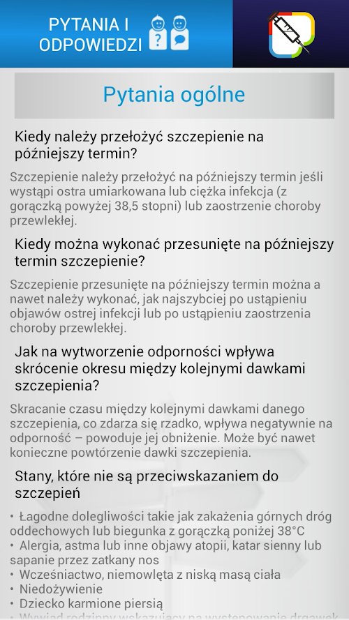 Poza informacjami o konkretnych szczepieniach aplikacja zawiera ogólne informacje: