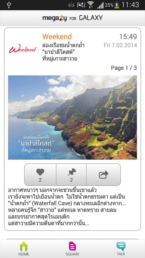 You can select those topics that interest you and choose to follow your favorite gurus or the stories that sparkle your imagination. Magazy for GALAXY also allows you to decide what you want to keep for later reading and share what's on your mind with friends through the chat feature.