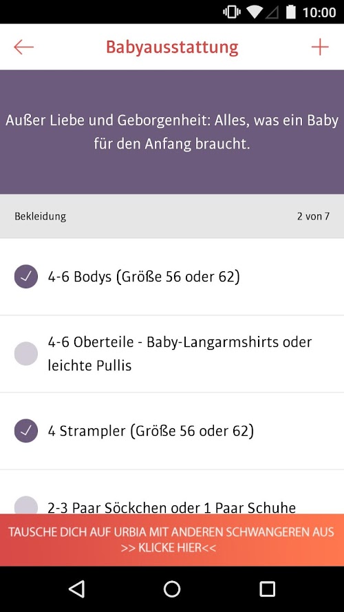 • Interaktive Checklisten erleichtern Ihnen die Vorbereitung auf das Leben mit Ihrem Baby