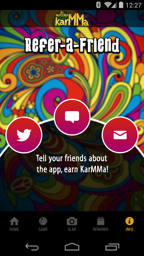 Get social and earn Mellow KarMMa when friends you invite download the app, or you interact with us on Facebook, Instagram or Twitter. You even get karMMa when you play the Whack-a-Mel game.