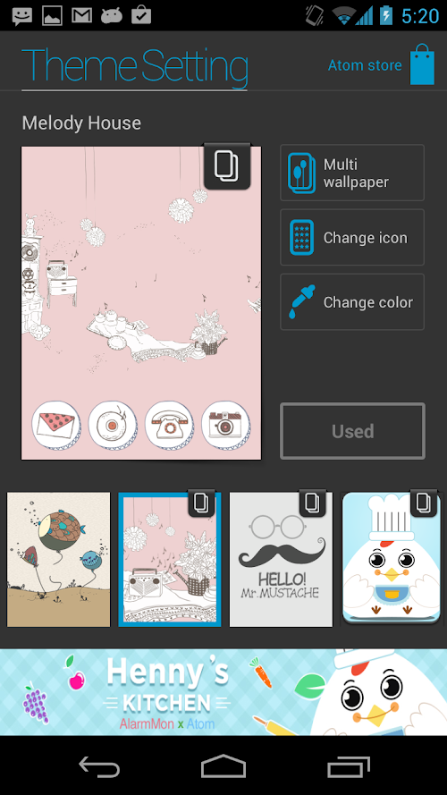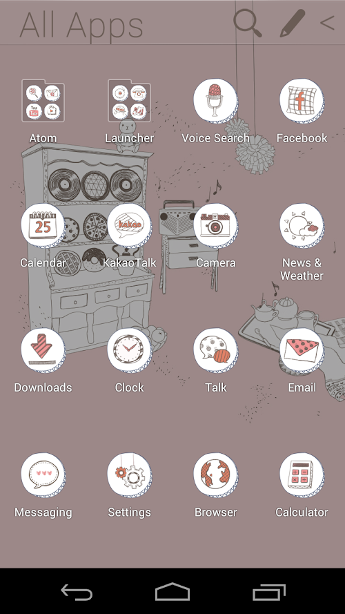 With the participation of a few famous illustrators, artists and actors, we are building out a rich and diverse library of themes and icons for your Android. (You can also search for widgets via the Atom Store)