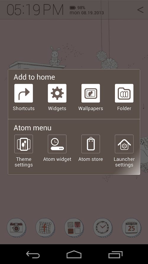 - Home Screen Copy: Copy the home screen you have set up via another launcher over to Atom Launcher.