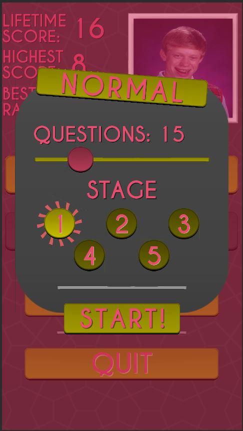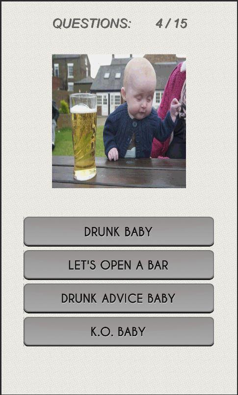Over 280 Internet memes await you to figure out in this trivia app. The meme quiz starts with the easiest meme questions that any Internet noob can answer, to the hardest, most obscure memes that only a true Internet meme hero can know.