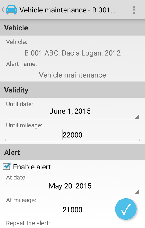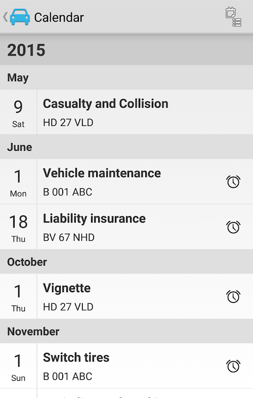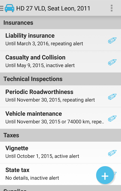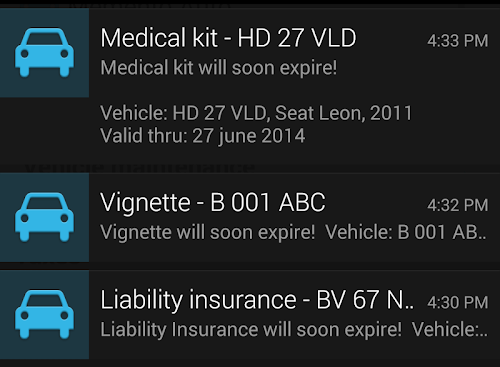 - Reminders (using notifications) for the most important events related to your vehicle: