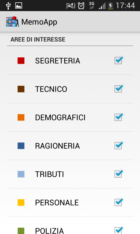 L'applicazione, è configurabile selezionando le proprie Aree tematiche di interesse tra quelle proposte: