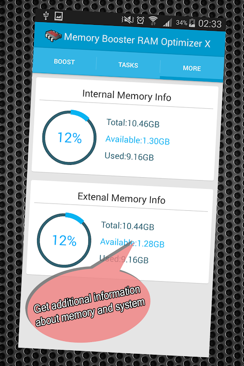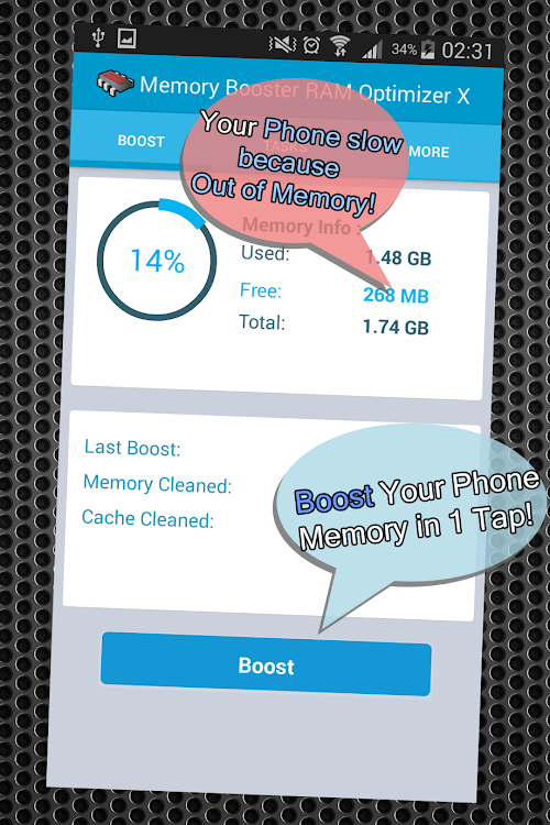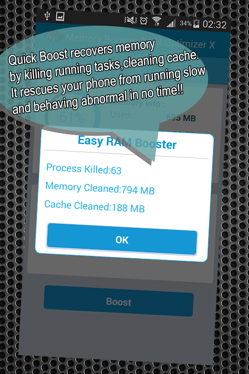 Memory Booster Ram Optimizer X is a FREE powerful RAM & Cache boosting app designed for Android devices which will make your phone or tablet work faster.
