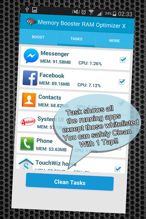 The application uses a sophisticated technology to optimize the performance of your device. For maximum results you should do a manual boost once a day.