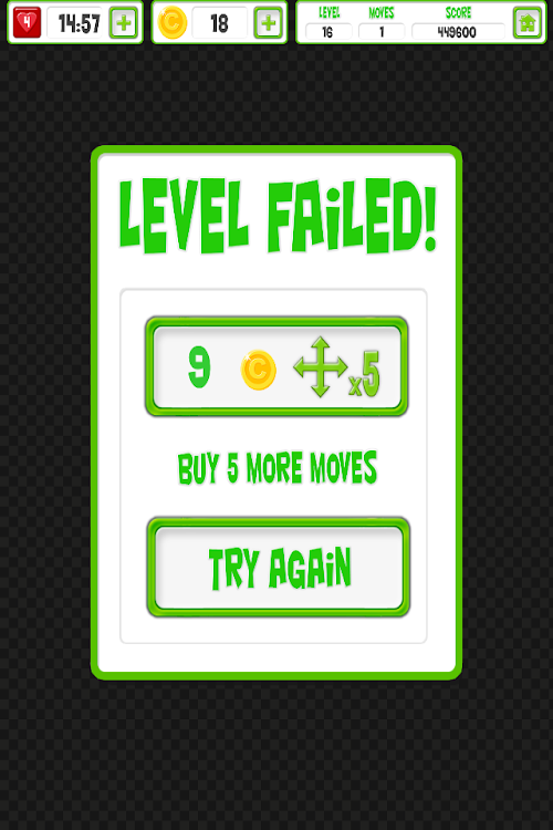 Step 6: You will earn a new life every 20 minutes, or you can spend credits to purchase lives to continue playing. If you are stuck on a level then you can also spend credits to give you five extra moves to help you on a difficult level. Credits can be purchased through the game shop.
