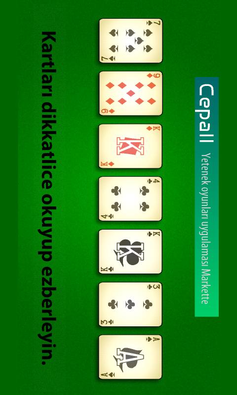 You can find various popular memory games in our application. One of the first added games is matching the cards which is a game for people from all ages can play by improving their visual memory. The second game, which you can test your memory, is finding the different card according to the level.