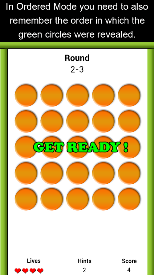 Ordered and unordered modes determine if you need to also remember the order in which the circles are revealed, which further trains your brain and your photographic memory.