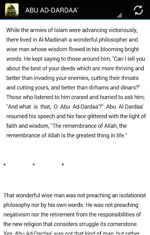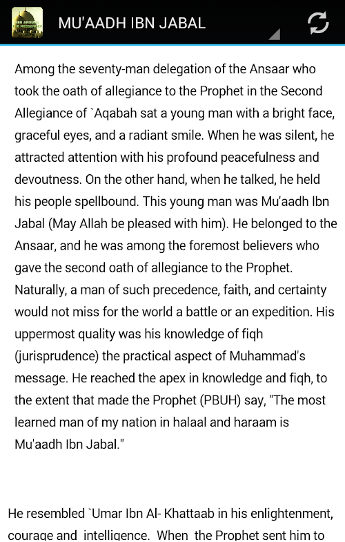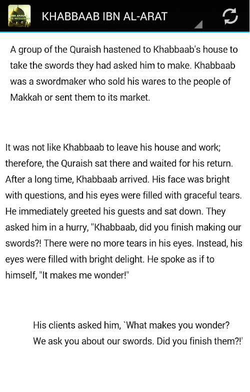 We cannot help but be moved by the lives of the Companions (Sahabah) depicted. The Sahaba were the companions of the Prophet Muhammad (Peace be upon him) to whom the Deen of Islam was revealed through the Quran and Sunnah Hadith. We long to spend the same hours in worship of Allah as they! In this App the Muslim can learn more about that first generation of Muslims.