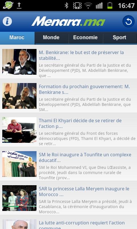 Accéder à l'actualité nationale et internationale en ligne et aux programmes des principales salles de cinéma au Maroc à travers un accès simple et rapide en langue française et arabe classée par rubrique: Maroc, Monde, Economie, Sports, Sciences, Technologies, Culture, Insolite, People et Cinéma.Access to national and international news online and programs of the main theaters in Morocco through a quick and easy access in French and Arabic classified by category: Morocco, World, Economy, Sports, Science, Technology, Culture, Unusual, People and Cinema.