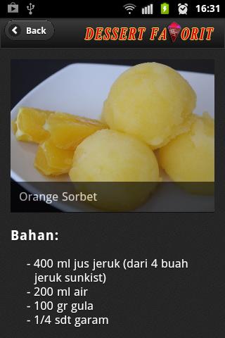 Makanan pencuci mulut yang segar dan lezat akan membuat pengalaman makan anda menjadi komplit. Tambahkan menu dessert ini pada resep masakan anda. Dijamin akan membuat ketagihan akan kenikmatannya.