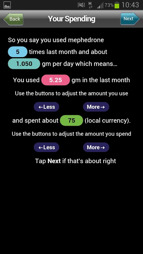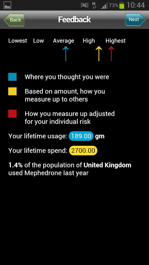 Get anonymous, objective feedback on your mephedrone use and compare yourself to thousands of other people around the world.