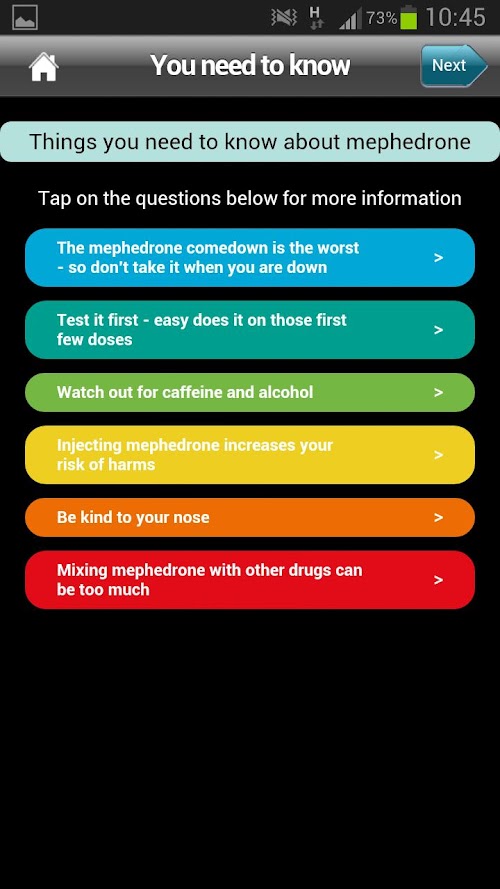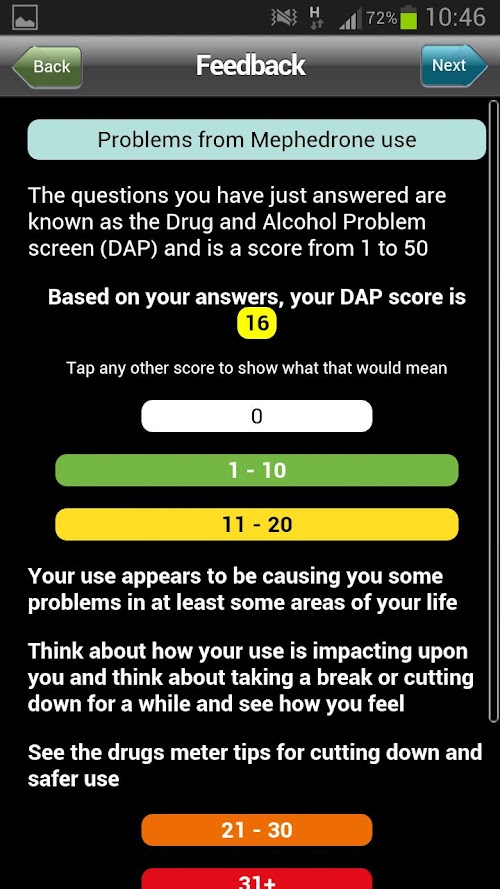 •Drug associated problem score quiz to assess how mephedrone is impacting on your life