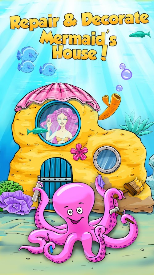 Ava’s friend Mr. Octopus wants to surprise her and redecorate her house. Help him: scrub off the seaweed, paint the house and decorate it anyway you want!