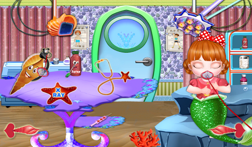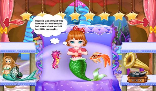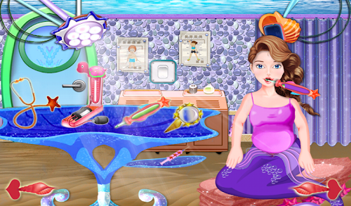 Hi, welcome to this wonderful world of magic. Welcome to this magical land, land of game and love. Today you are a lucky child because you can feel the fun of here. You will be able to know the magical beings, you can play with them and just maybe you'll make great friends. To fulfill the mission that we have prepared for you will have to get this magical land where you will meet our beautiful mermaid. Yes, this magic place is in the depths of the ocean, here everything is colorful and lively. Pisces sing, play and dance all day. It's a great place. Our friend lives here and enjoy every moment. Through this game for girls you will be able to help her to give birth to a beautiful child. You have to prove to everyone that you're a very good doctor.