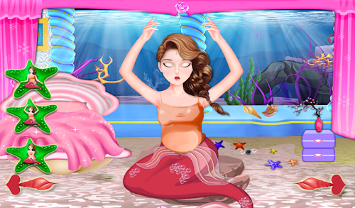 Hi, welcome to this wonderful world of magic. Welcome to this magical land, land of game and love. Today you are a lucky child because you can feel the fun of here. You will be able to know the magical beings, you can play with them and just maybe you'll make great friends. To fulfill the mission that we have prepared for you will have to get this magical land where you will meet our beautiful mermaid. Yes, this magic place is in the depths of the ocean, here everything is colorful and lively. Pisces sing, play and dance all day. It's a great place. Our friend lives here and enjoy every moment. Through this game for girls you will be able to help her to give birth to a beautiful child. You have to prove to everyone that you're a very good doctor.