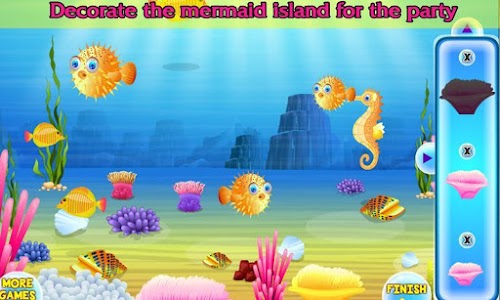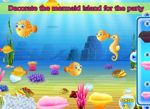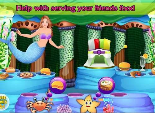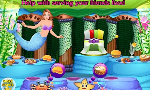 When all your friends are arrived at the mermaid birthday party you are serving the sea animals some food and drinks. And in the last minigame you can decorate the underwater ocean world of the mermaid.