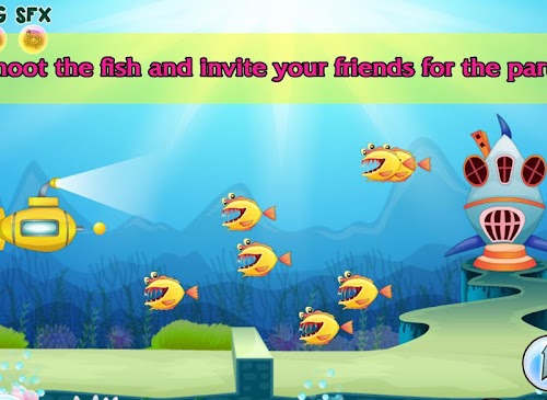 Mermaid Coralie will give her birthday party in her underwater world. Her birthday will be soon and every birthday needs a party! For mermaids birthday party she wants to invite some sea friends. In the first minigame you have to invite her friends: dolphin, crab, star fish, jellyfish and the shark. Shoot your enemies to reach the houses of your friends!