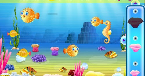 ♫ Play with the mermaid and her friends: dolphin, crab, star fish, jellyfish and shark