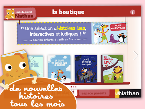 En bonus, un Espace parent, avec des articles ciblés sur la lecture issus du site http://www.grandiravecnathan.com.Nathan my stories is fun to listen to or read a story, games and more!