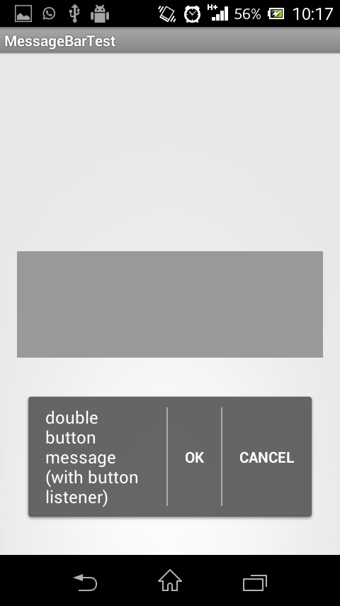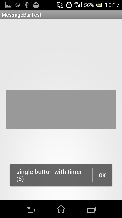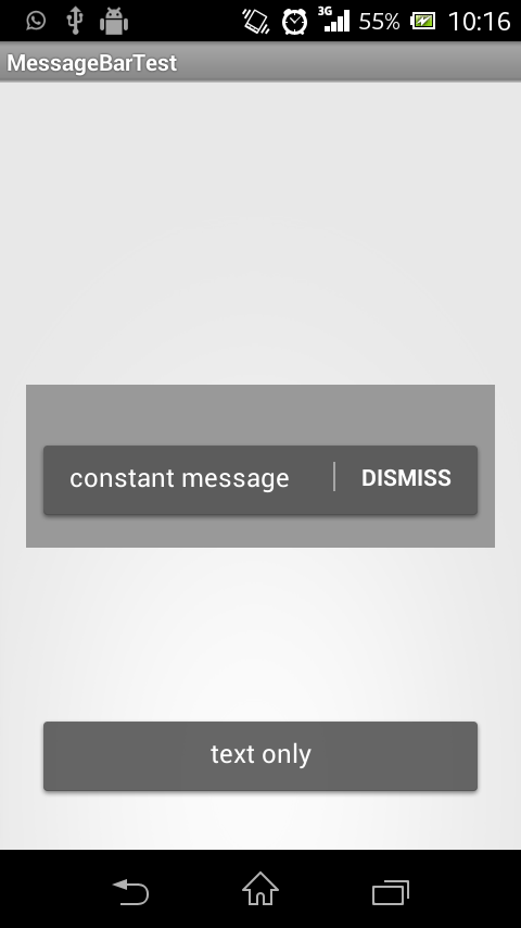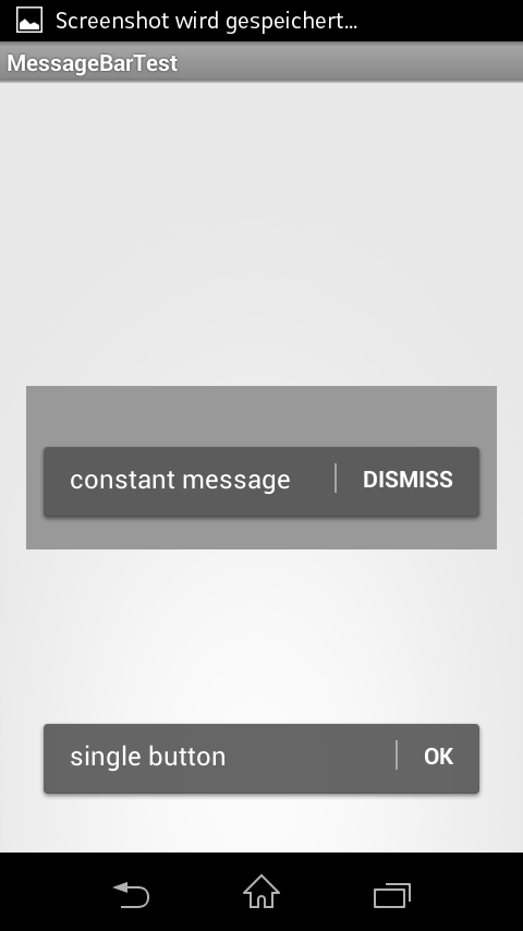 An Android Toast replacement in form of a message bar, similar to the one seen in the GMail app. Multiple messages can be posted in succession and will be retained on screen rotation
