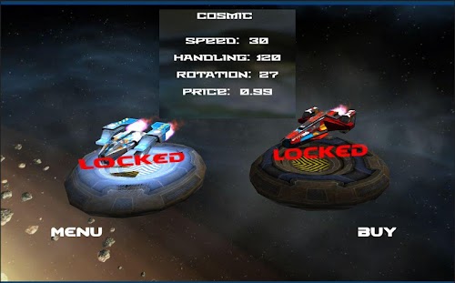 Pick between three battle ready spaceships equipped with various specs. Choose between blistering speed or a slow and steady approach.