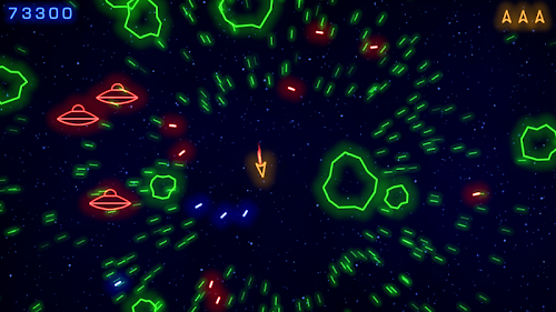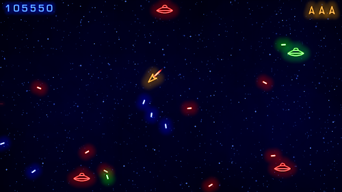 Meteor is a simple space shooting game with colorful neon graphics. Blast down all the meteor before they impact on your spaceship. Watch out for the ufo invaders which fire at your rocket. In this game you most shoot down all the enemies and dodge meteor storms in order to survive. Shoot down as many enemies as you can and get the highest score!