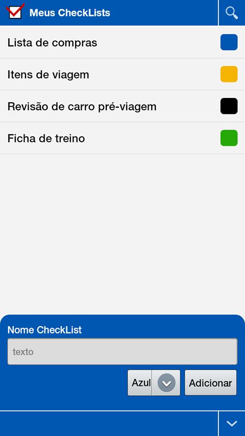 Palavras-chave: Checklist, checagem, lista, marcador, tarefa, lembrete.My CheckList is an application for organizing and checking content, so that anyone can keep any record inserted in the application checklist. The variety of list / checklist in use today is immense in its lot organized and controlled through pen and paper. With My CheckList, simply and quickly, you can record and retrieve their checklists at any time, simply activate the menu and add create your shopping checklist, reminders, tasks, bookmarks etc. With My can CheckList: