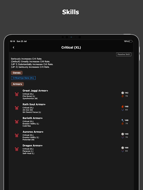 You can check all the game information including monsties, genes, monsters, weapons armors etc.